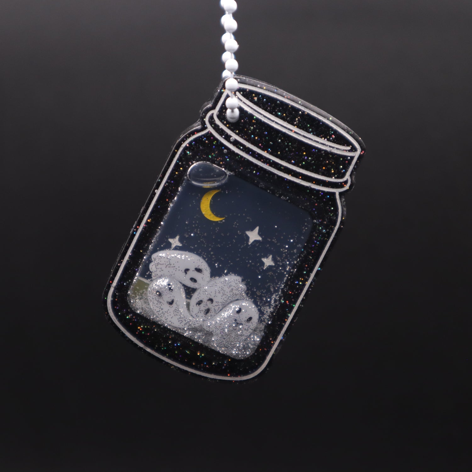 Graveyard Ghosts Jar Shaker Keychain - Black Glitter Version | Halloween Accessories