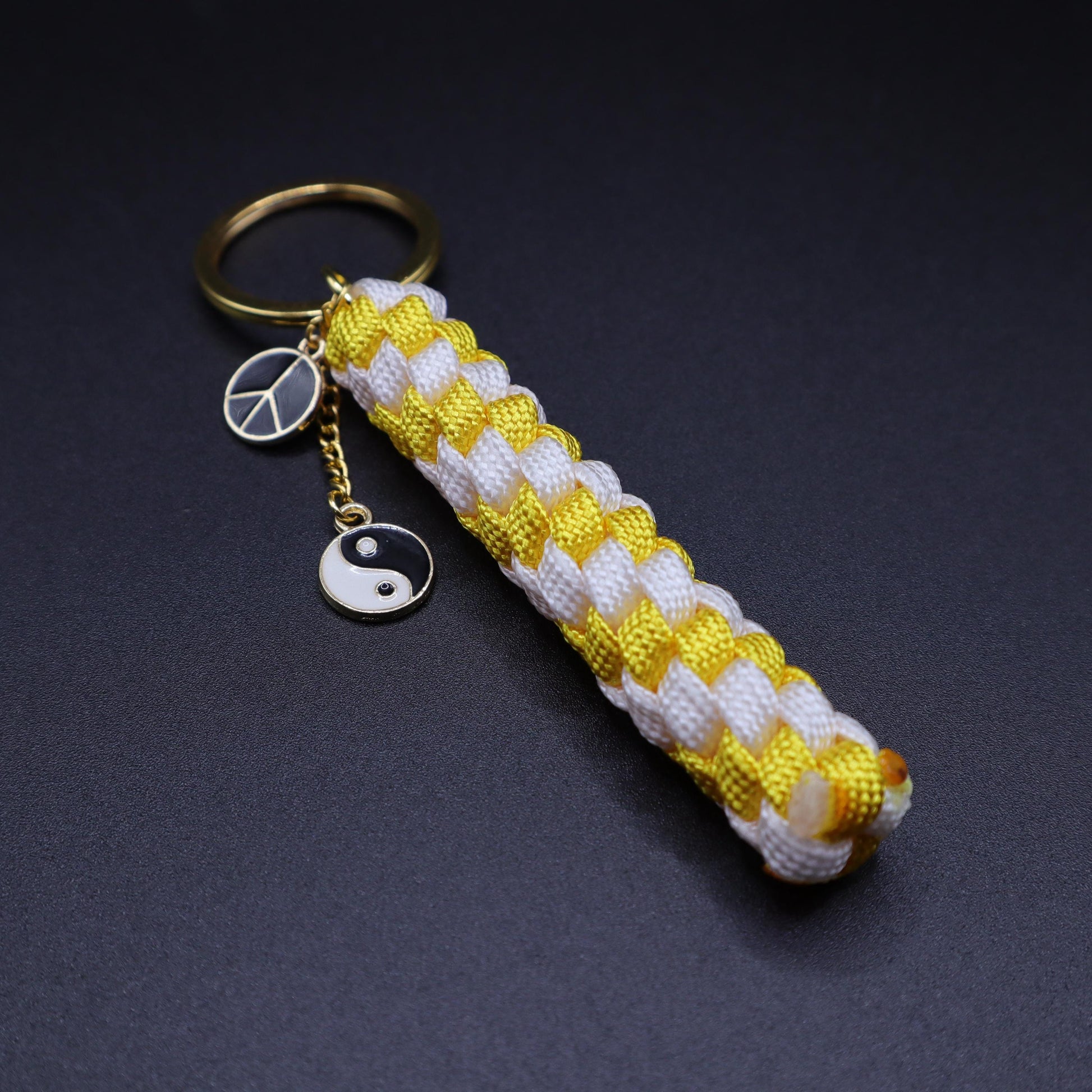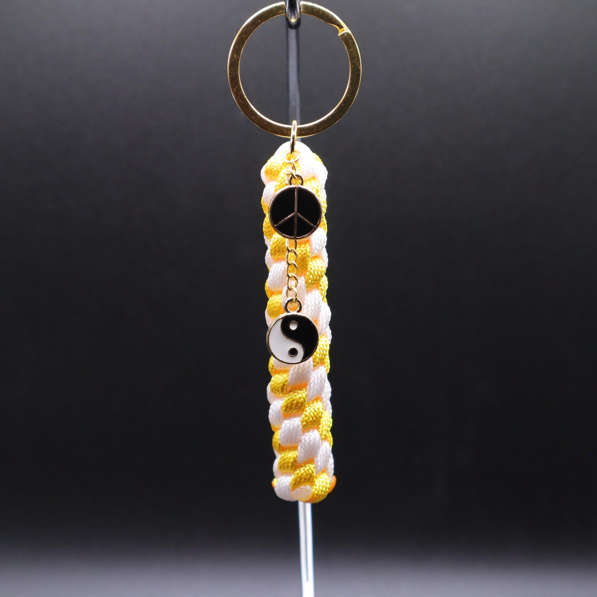 Handmade paracord keychain with peace sign and yin-yang charms. This is the perfect accessory for your keys, backpack, purse, or camping equipment.
