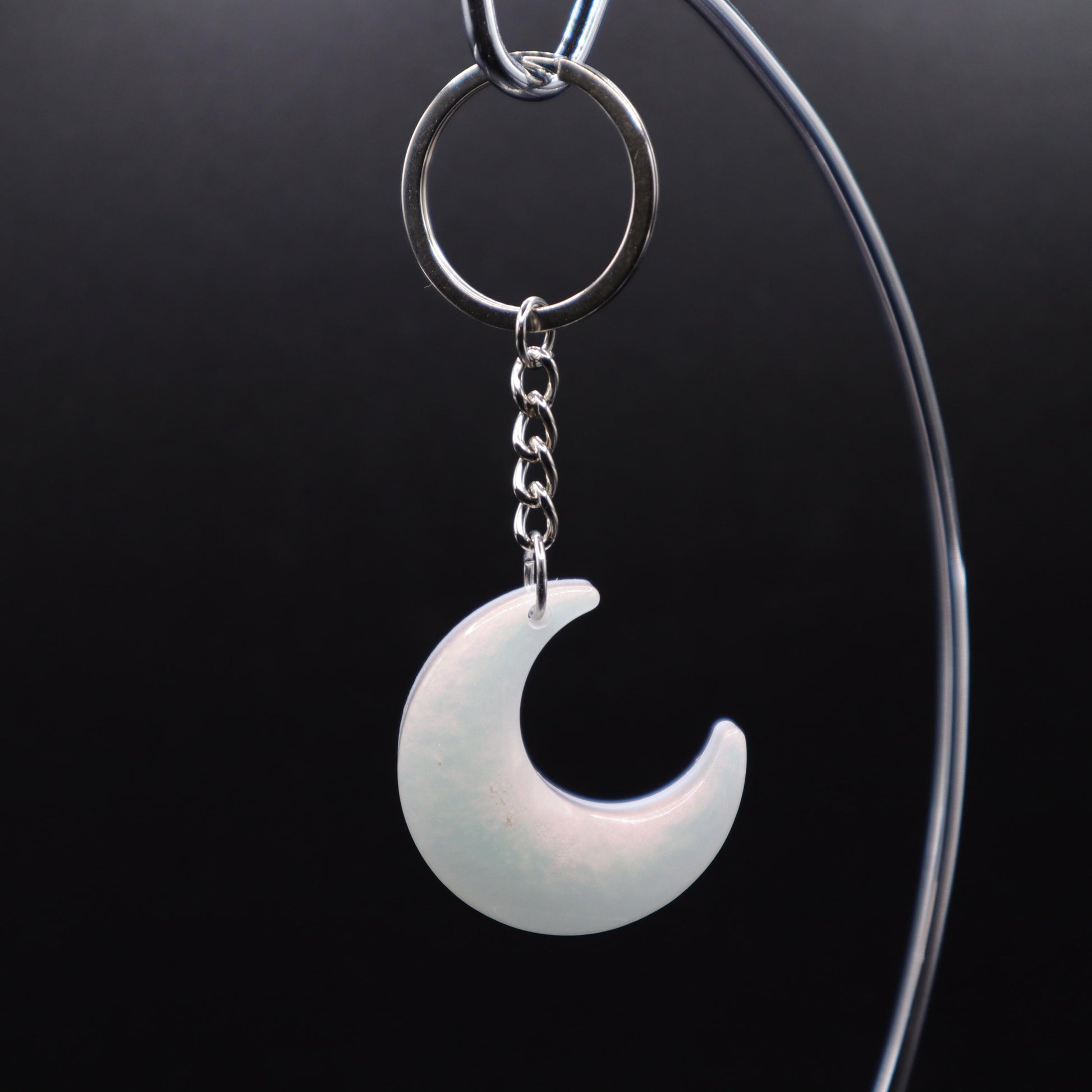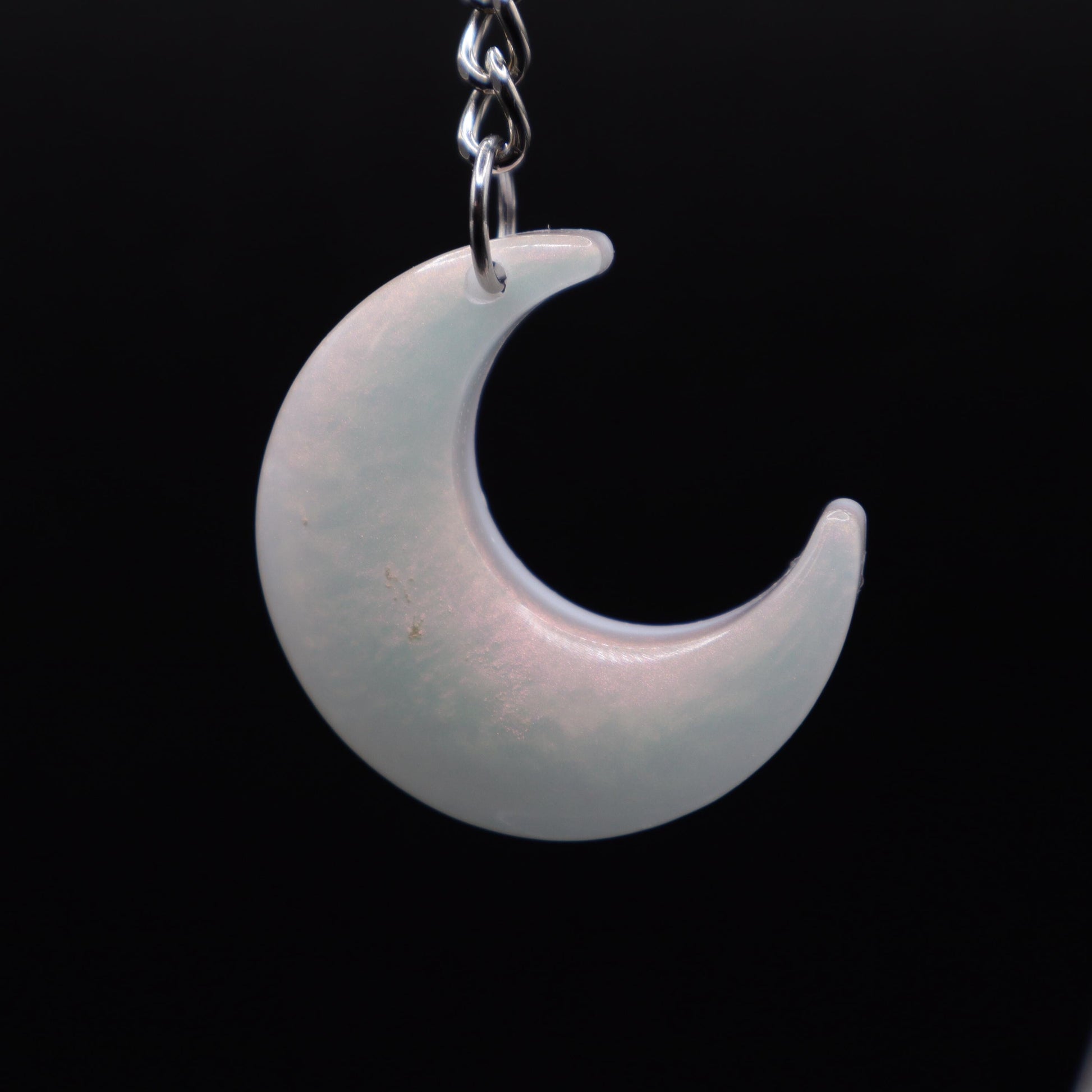 Each item is handmade by me and features a 1.2 inch silver keyring. Moon resin piece measures about 1.5" by 1.3" and is attached to a 1 inch long chain.